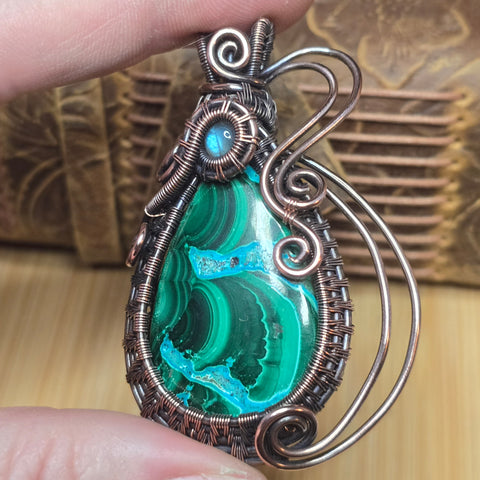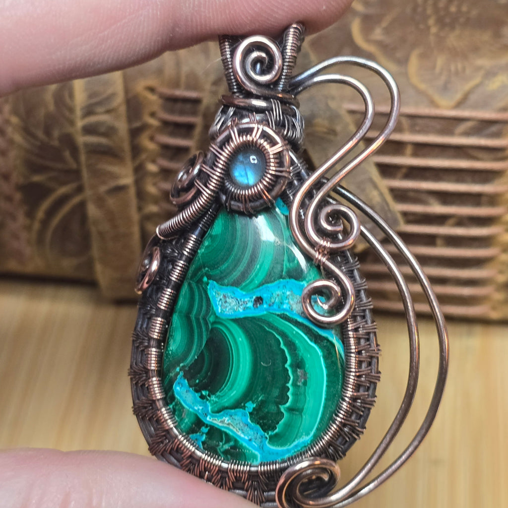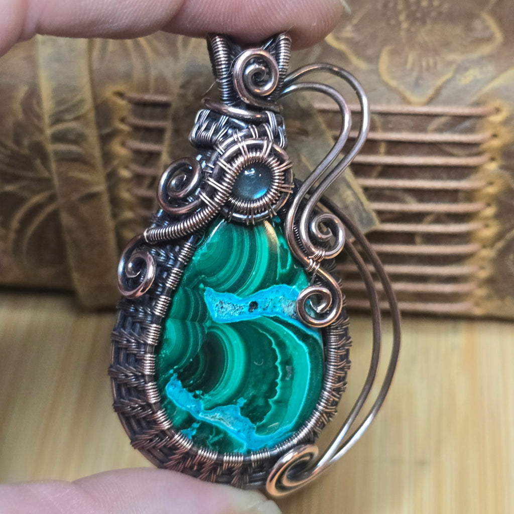 ✨ Stone: Malachite with chrysocolla and labradorite accent