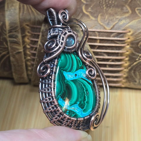 • Authentic banded malachite with natural chrysocolla seam