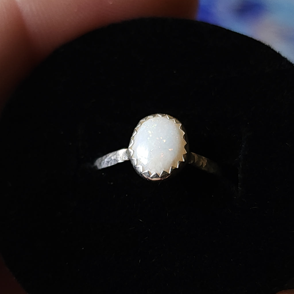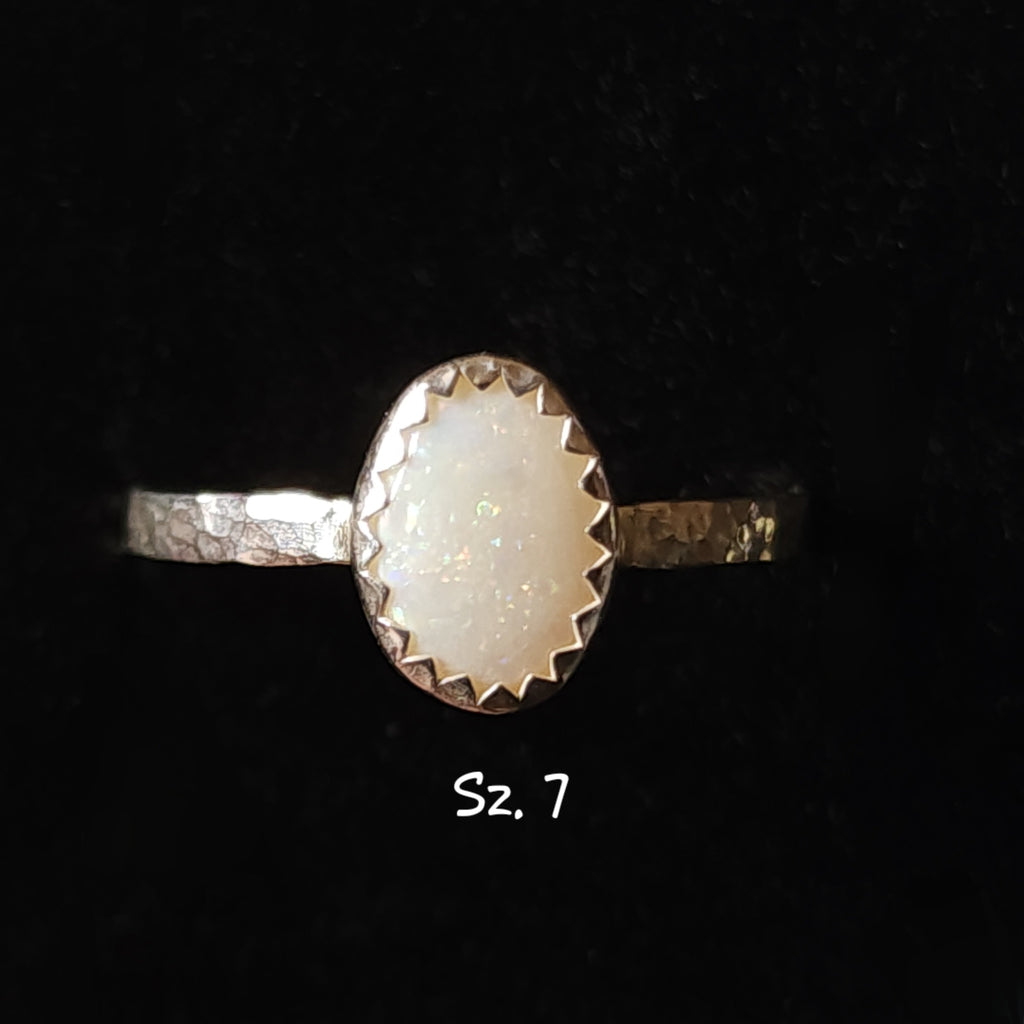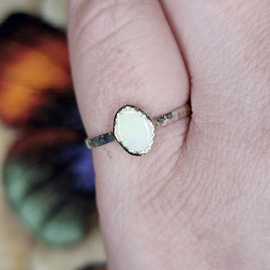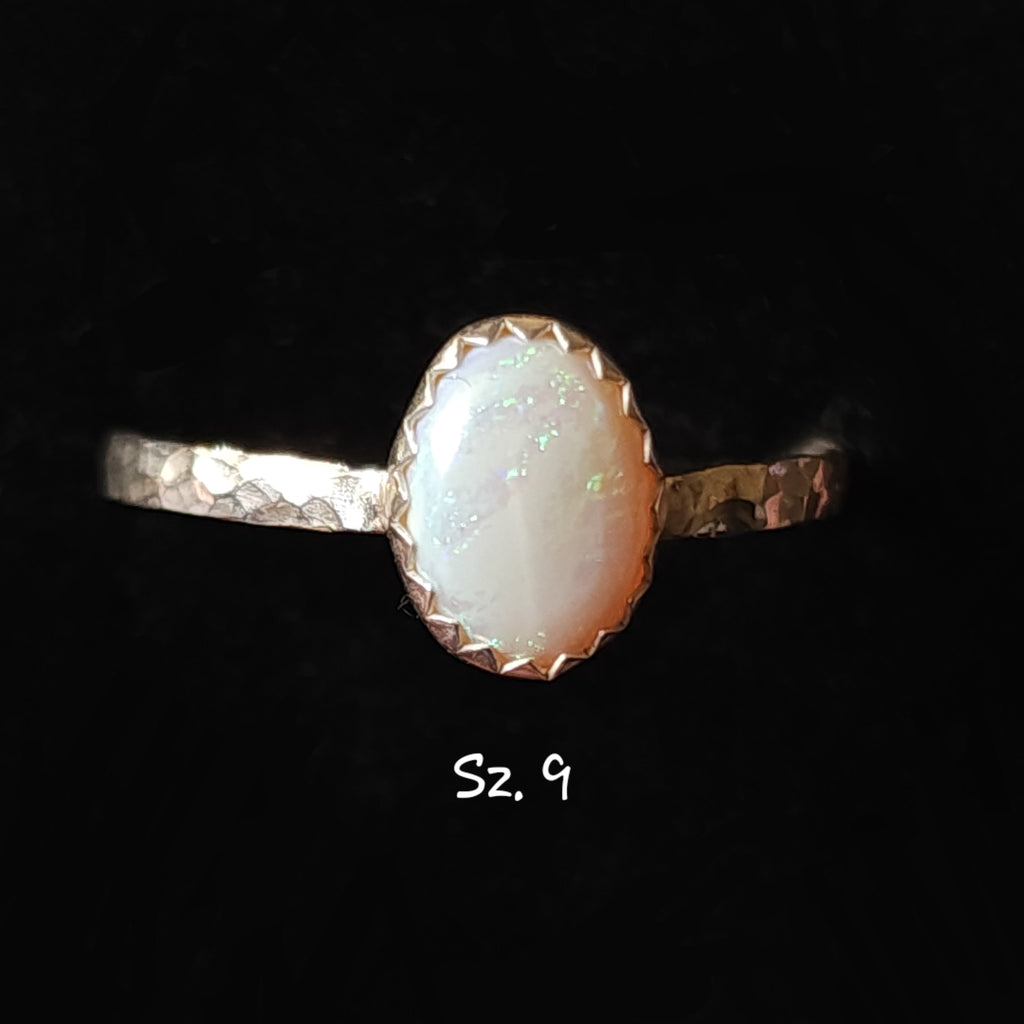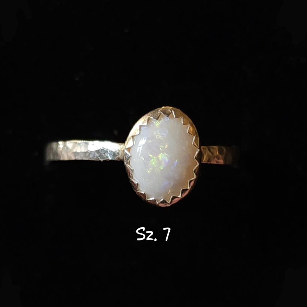 Our opal rings come in various sizes, with the option to size up to 3/4 higher in 1/4 increments if needed. Don't hesitate to reach out to us if you need a specific size opal ring, we might just surprise you with an entire size increase!
