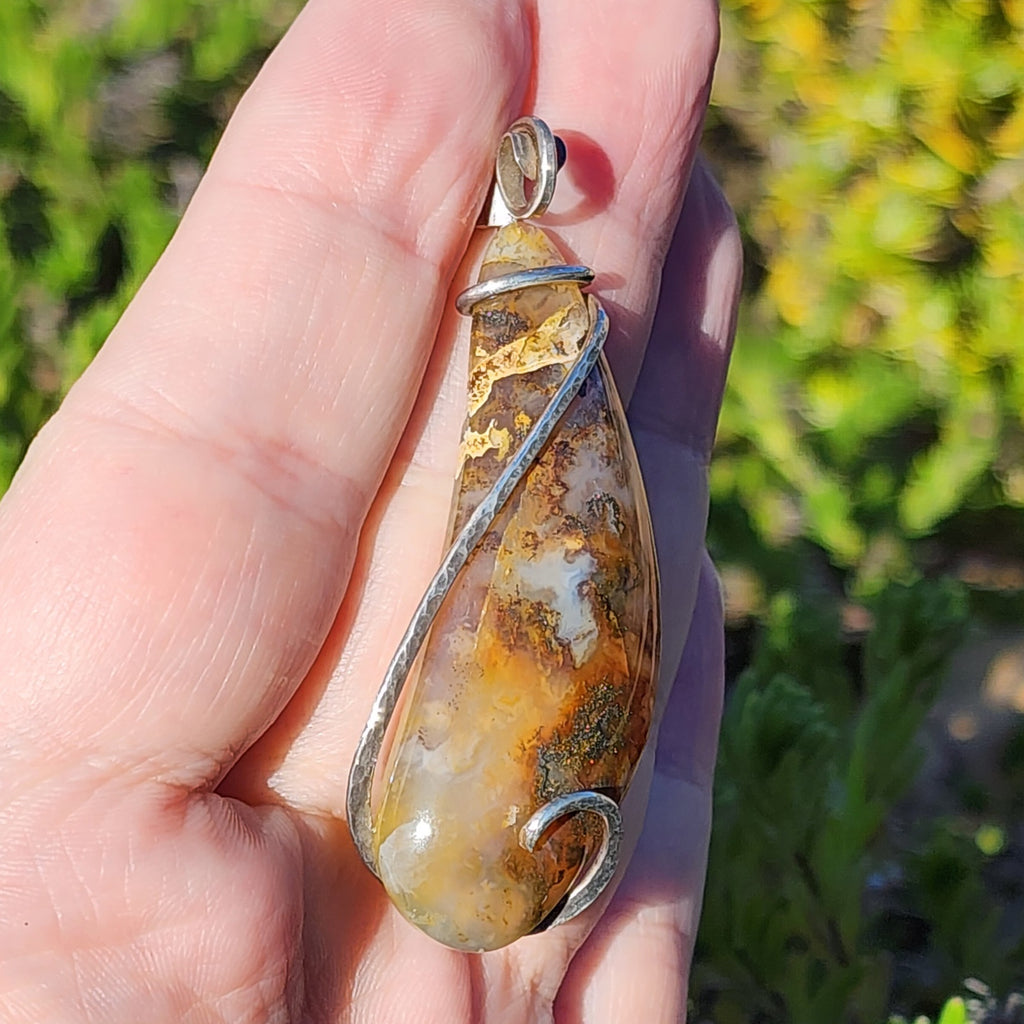 Graveyard Point Plume Agate Pendant – Sterling Silver Oregon-Mined Statement Piece with Marcasite