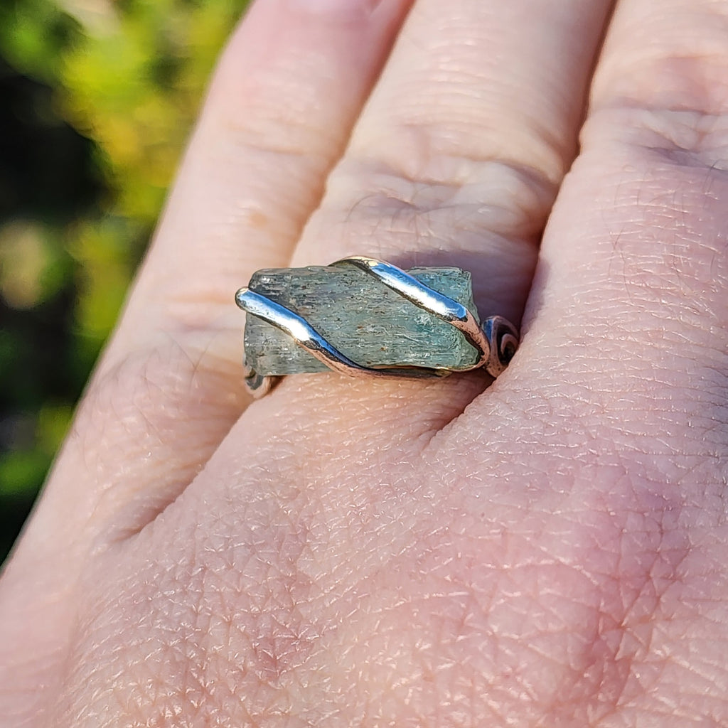 Raw Aquamarine Ring – Sterling Silver Boho Woodland Fairy Statement