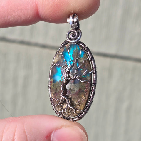 Tree of Life Pendant – Aurora Opal + Moss Agate Doublet in Sterling Silver