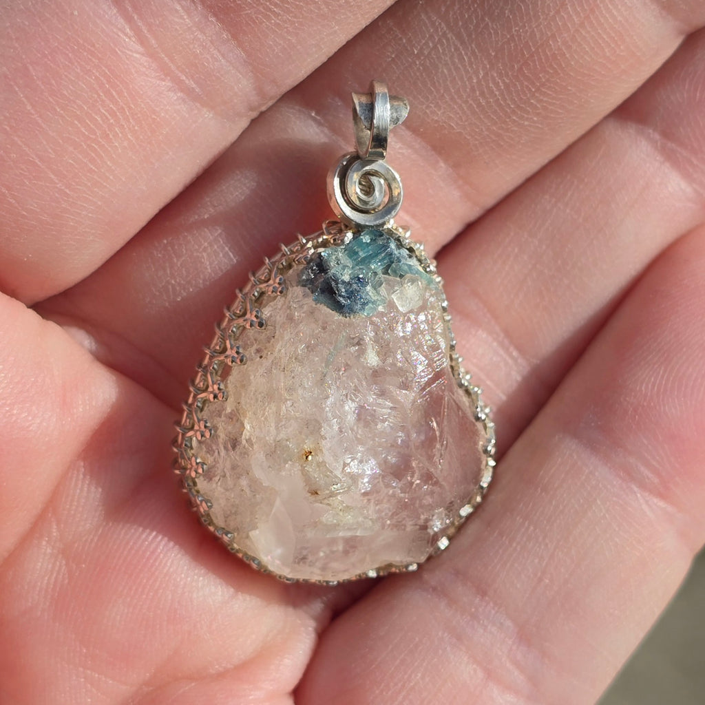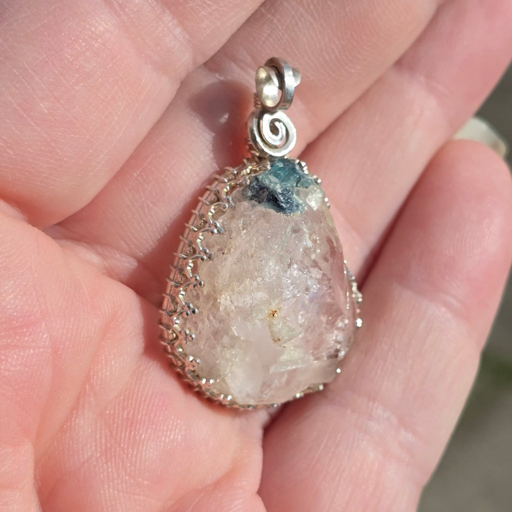 Quartz and Indicolite Tourmaline Pendant – Sterling Silver Handmade Statement Necklace