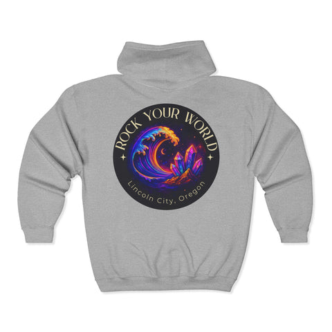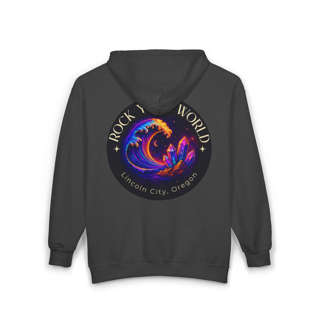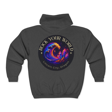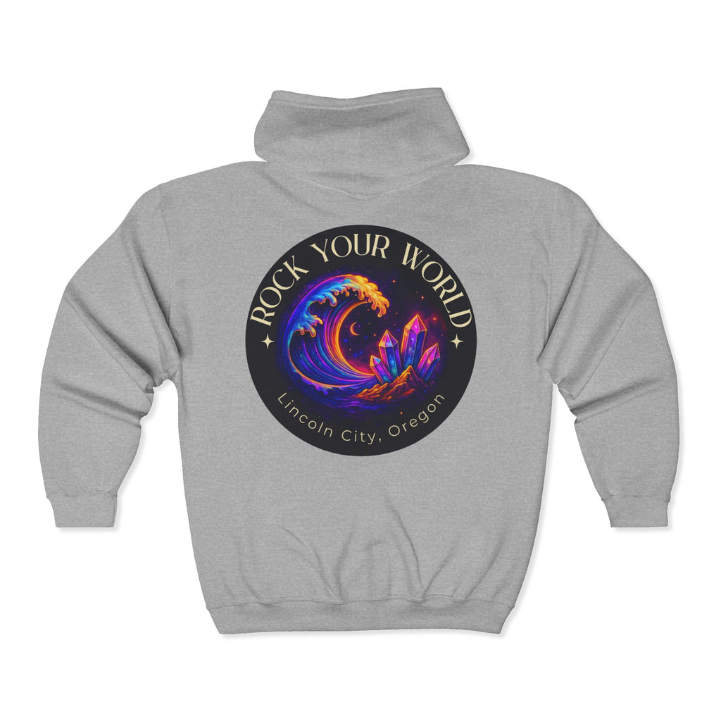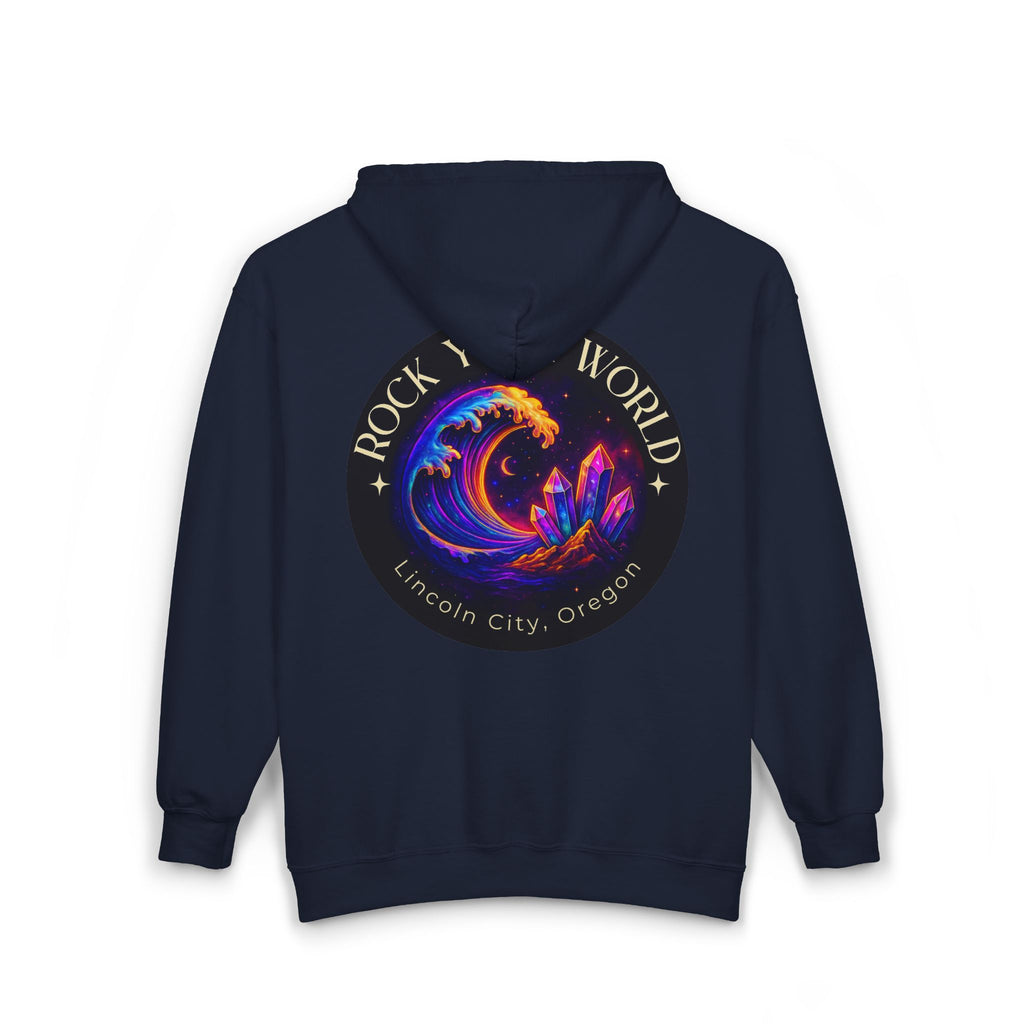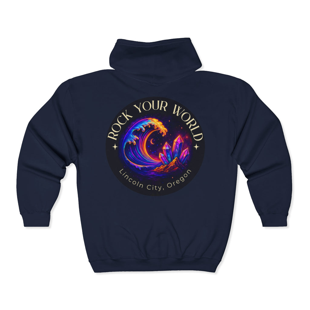 Printed with our signature moon wave and quartz burst design, this full-zip hoodie carries the same coastal calm and deep wild energy as the rest of the Moonlight collection—but with a little extra warmth and versatility. Whether you’re heading to a beach bonfire, rock show, or just sipping coffee on a misty morning, it’s got your back. Literally.