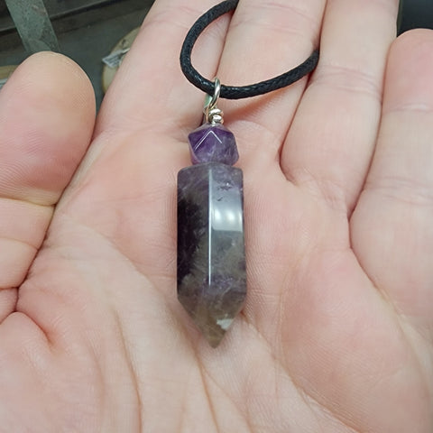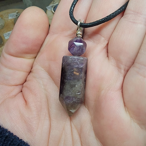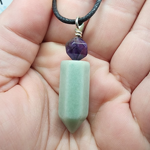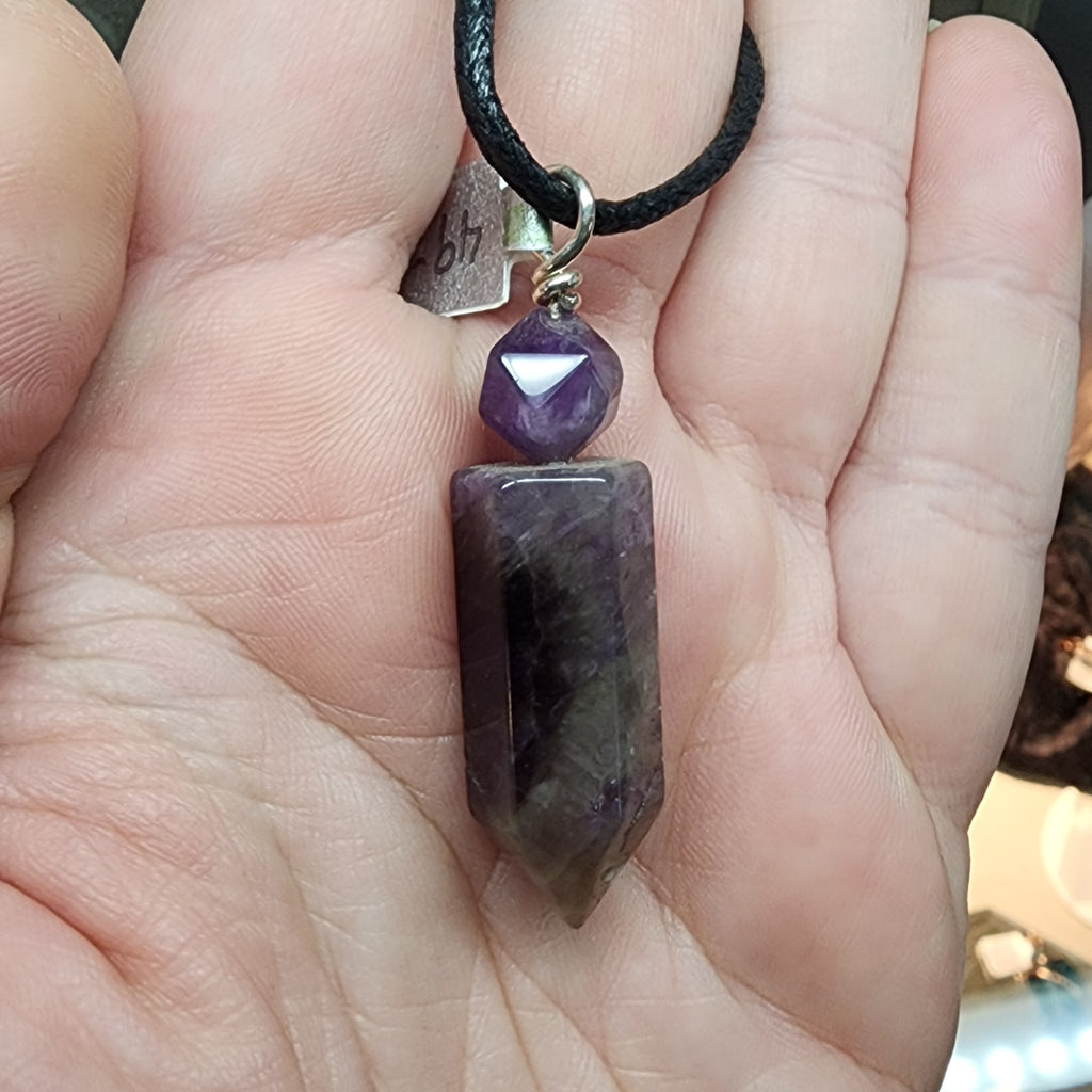 A striking combination of gemstones in our version of a classic amethyst crystal point pendant.