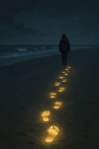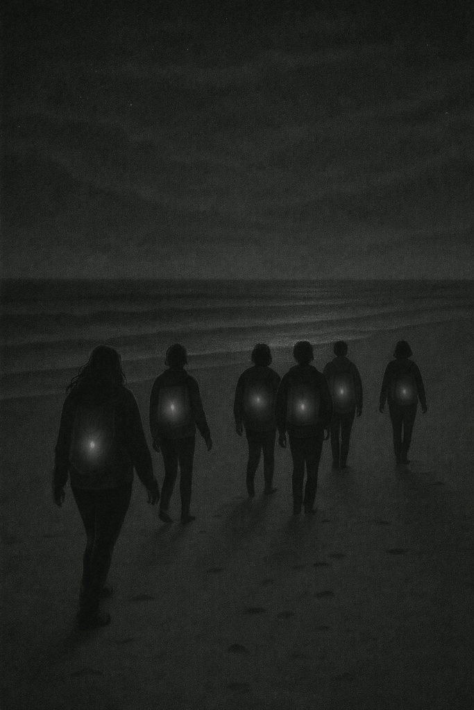No headlamps. No chatter. Just low glow sticks, the soft rhythm of footsteps, and the salt air wrapping around you. 🌌